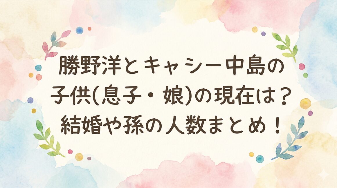 今回は、勝野洋さんとキャシー中島さんのお子さん(息子・娘)の現在や、結婚状況、お孫さんの人数について詳しく解説しました。以下に本記事の重要なポイントをまとめます。